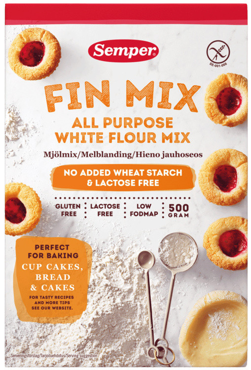 Ingrediënten: Maïszetmeel, rijstmeel, aardappelzetmeel, gemodificeerd aardappelzetmeel, suiker, verdikkingsmiddel (gom, hydroxypropylmethylcellulose, natriumalginaten, pectine), bakpoeder (glucono-delta-lacton, natriumbicarbonaat), mineralen (ijzer), vitamines (thiamine, riboflavine, niacine).
